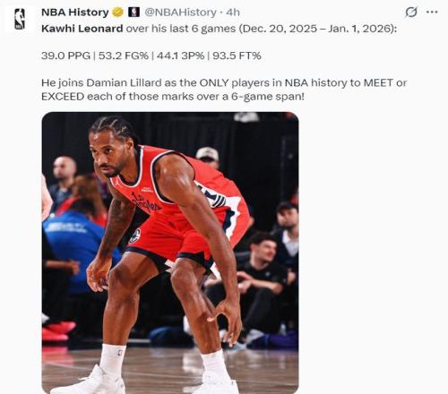 Shams:此前因踩到詹姆斯而扭伤脚踝的祖巴茨明日复出,期间快船6连胜