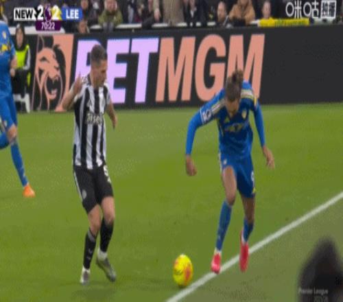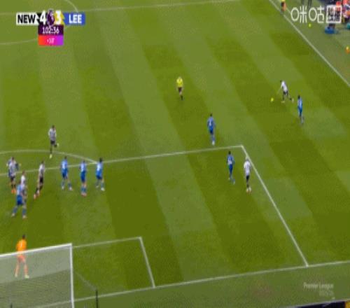 第54分钟,吉马良斯传中,乔林顿甩头攻门扳平比分,纽卡2-2利兹联