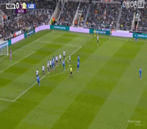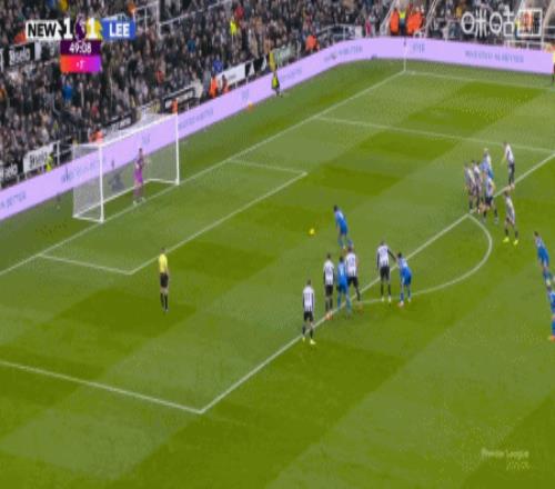 第45+5分钟,佳夫手球送点,勒温主罚点球命中,利兹联2-1纽卡